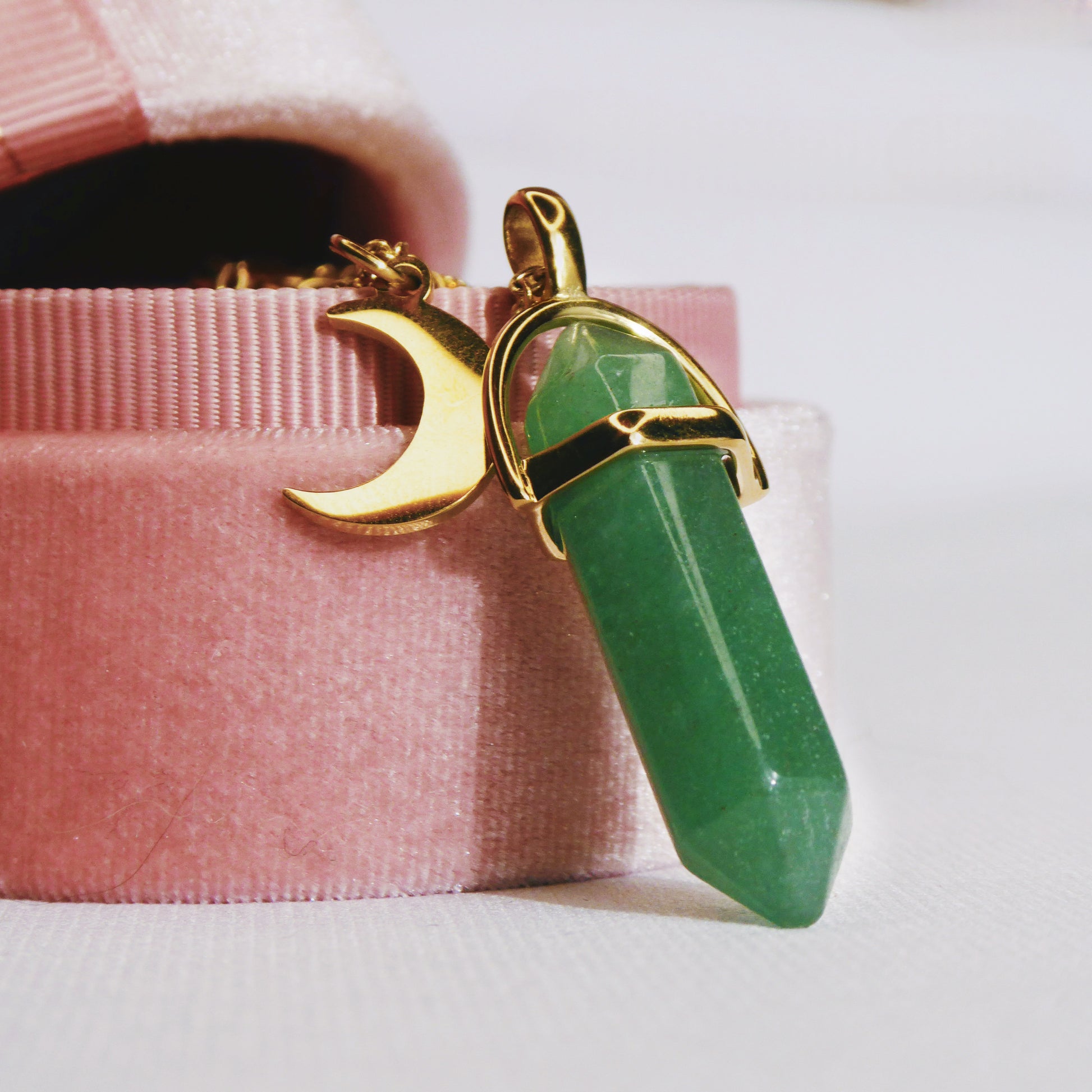 DETAILS: 1.5 inch natural green aventurine on 17inch surgical hypoallergenic stainless steel chain.